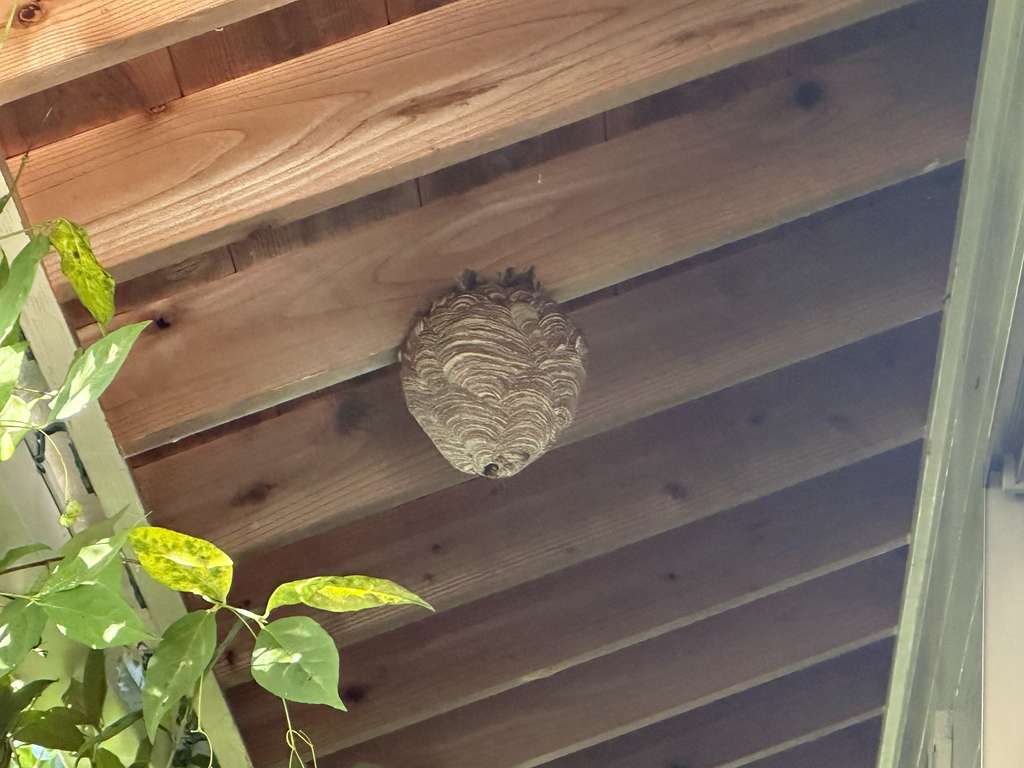 何年か前にスズメバチに刺されて、大変な思いをして以降、できるだけ巣を作らせないように、蜂が好きそうな場所に忌避スプレーを撒いたりしています。